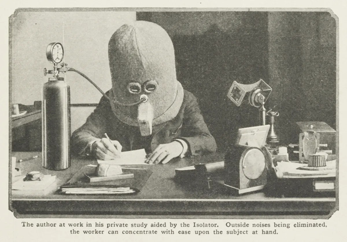 Dikkat dağınıklığıyla baş etmek için kullandığımız sistemler size yetersiz geliyorsa, tarihin tozlu raflarındaki bu radikal icatla tanışın. 1920’li yıllarda dış dünyayı büsbütün sessize almak için tasarlanan metal kask, kullanıcıya kağıt üzerindeki bir çizgiden öbür bir şey göstermiyordu.